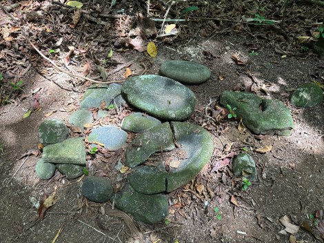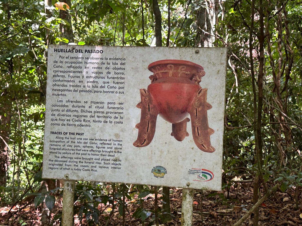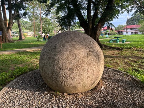 May 6. Today we booked a trip through Sierpe tours to Reserva Biologica Isla del Caño, stopping first to look at the mysterious round granite orbs in Palmar Sur. Archaeologists are still perplexed about their symbolism. Interestingly enough, there were several on the island we visited by boat. The whole place is an archaeological site, and guests are asked to leave everything as they found it. We were asked not to walk past a viewpoint a few minutes up from the beach.