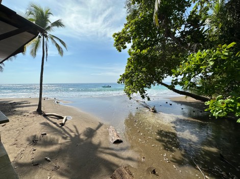 On the way to Uvita, of the famed Playa Uvitas “whale’s tail”, we stopped at Pancito Cafe. I was hankering for a latte, and treated Russ to a latte and pastry. Again, sticker shock. $14 USD. In Uvita I inquired about the bus schedule back and purchased my ticket. Next to the bus depot was a small office where one could book tours and national park entry. We decided to purchase a ticket to Manuel Antonio, the most popular (and smallest) national park in Costa Rica for the next day and a boat tour to Isla de Cana from the Oso Peninsula on the day after. An action-packed couple of days.