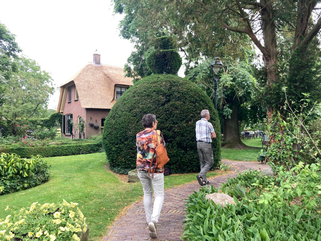 It was a lovely day. I walked around the garden, enchanted with the beauty of the vibrant flowers and the humming of bees. We sat at a lovely outdoor table and had homemade apple cake and coffee, then took a stroll to look at the old water mill and surrounding farmland. On the way back we learned that Coosje had left it on the side of the road, thinking that the car’s steering was off. We walked to the car and Roel tested it. He appeared to be the problem solver in the family.