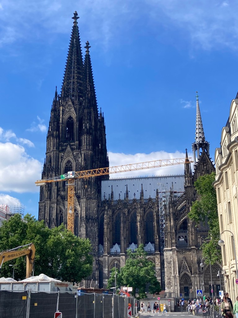 July 6. My luck didn’t last. I was woken at 7:30 by loud voices. A group of people were walking nearby, and a vehicle drove past that looked official. I packed up quickly and moved my car outside the park. An older guy came over and gave me a stern lecture in German. I didn’t understand and tried to communicate that, but he continued, undeterred. I thanked him and and left, as I didn’t want to incite more trouble. I headed to Cologne and after battling some confusing traffic detours, I parked and sat down for a nice latte at The Coffee Guy. From there I walked toward the old town, stopping at an ethnographic museum built around the collection of a German explorer named Oppenheim—stuff he brought back from the Middle East and “the Orient” in the late 1800s. It was fascinating, and I was surprised how aware he had been of the ills of colonialism. I stayed till 3:45.
