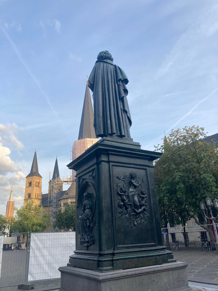 Afterward, I went back to the kebab place (couldn’t resist), then wandered around the neighborhood. I treated myself to a giant ice cream sundae—regretted it immediately because it made my stomach ache. As usual my eyes were bigger than my stomach. Later I walked around Bonn’s old town, hunting for Beethoven monuments and the places tied to his life. I was out pretty late, until around 10.