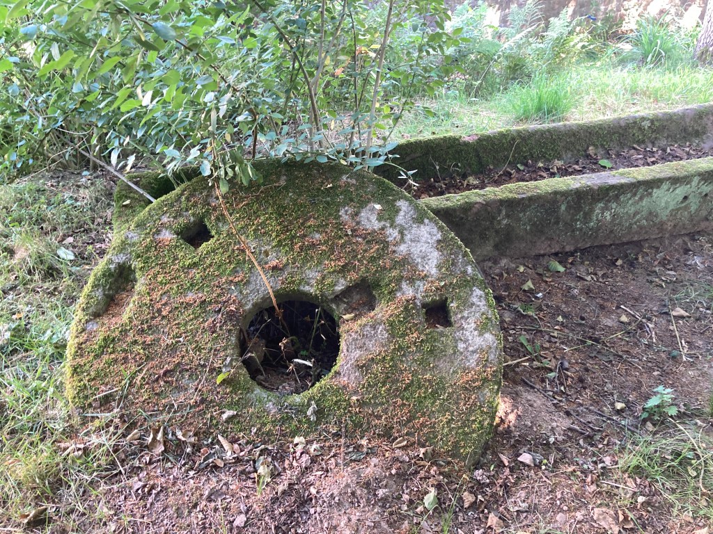 I bought a loaf of bread they had just made, which was delicious, and asked them to cut it for me. At five euros, it felt like a steal. Afterward, I wandered around the area, looking at the stone piles of water wheels, millstones, and boundary markers.