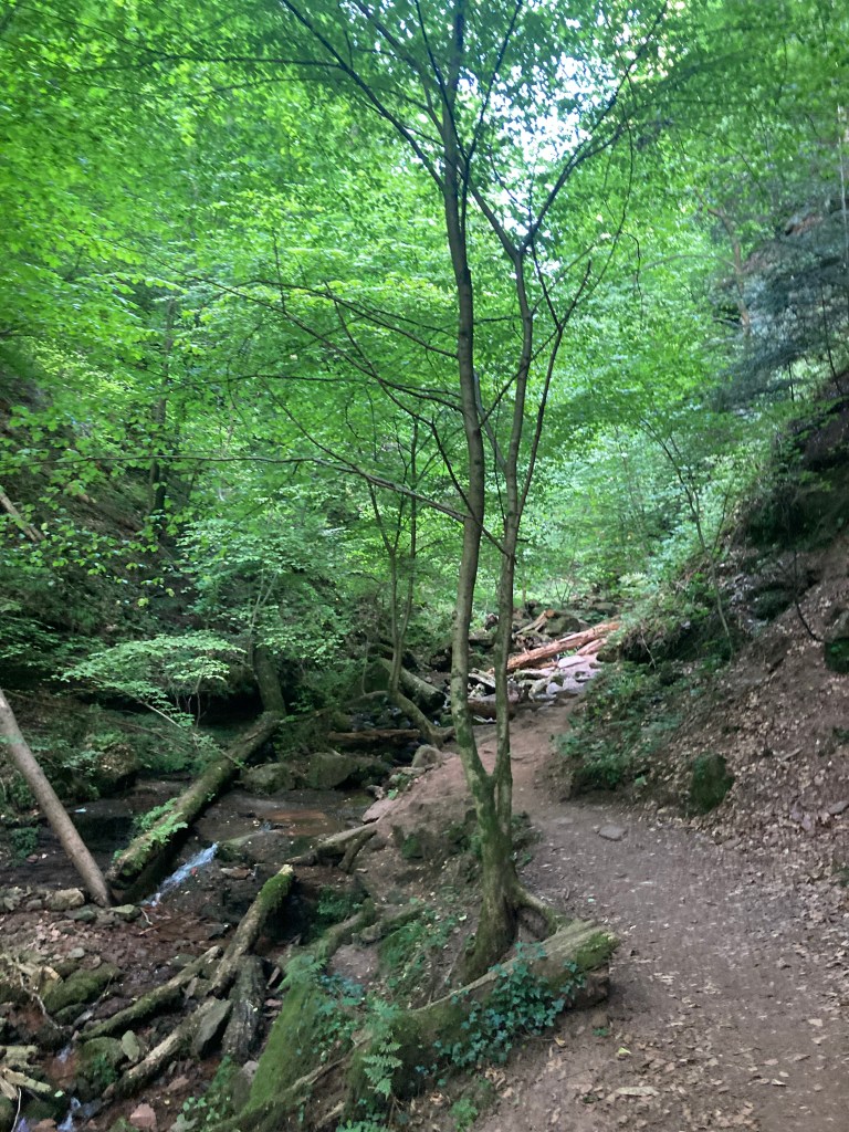 I spent a couple of hours wandering about the town before continuing along the Neckar River. There was one particularly picturesque spot where the canyon was deep, and the forest surrounding it was beautiful. I walked along the river for a while, seeing some fishermen and a man playing soccer with a young girl. He was very encouraging toward her, and I appreciated that. I couldn’t help but think about his condition—he was severely obese—and wonder whether he experienced prejudice or judgment. I felt empathy for him and, more generally, for people who’ve been marginalized or sidelined. It’s become a theme on this trip.