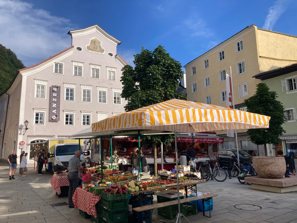 Afterward, I stopped by the pilgrimage church near the waterfall. It was locked, but there was an outdoor chapel that felt sacred in its own quiet way. Then into the town of Golling for cake—three slices from Café Maier, which I suddenly remembered I’d been to before. It felt like walking into a sweet little memory.