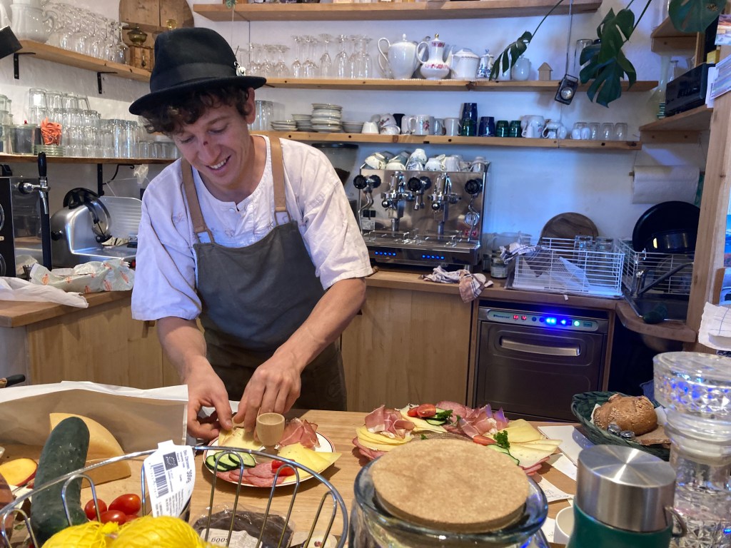 On the way out, I saw women raking hay by hand. It might be a requirement for local farmers to harvest traditionally. It’s beautiful to see these methods still in use. I stopped by Tamsweg briefly, considered a coffee, but decided to head back to the Mauterndorf mill café. I grabbed some salads at Lidl, returned to the café, and this time indulged in twocakes (yes, two). It felt a bit extravagant, but I liked them, so I let myself enjoy it.