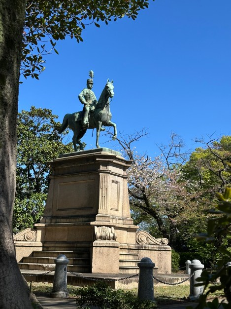 I spent an hour studying the extensive exhibit with the help of my friend Google translate. There was a lot to read. I could have spent longer but didn’t want Shawn to have to wait indefinitely. I told him a bit about the exhibit as we walked back to the train station, destination Yoyogi Park. We took the train to the Shibuya station, and I remembered a nice route via Koen Dori that paralleled the main artery to the Meiji Jingu. It was less crowded and not bounded by the claustrophobic effect of giant skyscrapers smothering you on either side. Once in the park, Shawn wanted to go straight, while I was interested in exploring the entire park, starting in the southwest corner and heading clockwise toward the cherry trees, first flight statue, and then to the dog run, where I saw Shawn leaning over a fence, entranced by some dog’s antics. While there was only one dog in a separate dog run for large dogs, there were about 15 in the dog run for small guys. Most people in Tokyo have small dogs, what I call purse dogs or ankle biters, as there’s not enough room for bigger ones in such a crowded cityscape. Apparently some of the yappers were wearing tight diapers. Anal retentiveness? Possibly a reflection of the so-called owners, not the dogs.