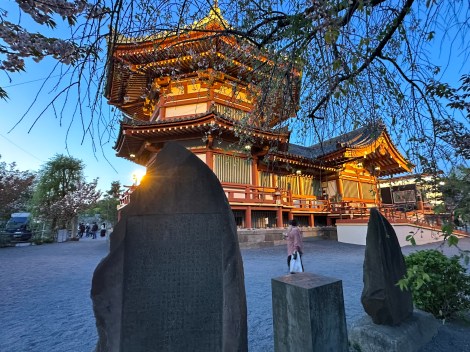 The carved gate in front of the mausoleum was stunning. I marveled at the craftsmanship of Japanese artisans. I was surrounded by their works of beauty. I wanted to squeeze a little more out of the day, and decided to walk the few minutes to the Bentendo shrine on the island in Shinobazuno Pond. It was nice to walk around at dusk and see all the people walking around and enjoying the waning light. I walked around the pond and wished I’d known about Shitamachi Museum which depicts the historical culture of lower town as the name implies with replicas of a tenement house and merchant home with antiques. The merchants in that area were primarily clog makers. Next to the museum was a cutaway showing the ancient road and a bridge that had once crossed the river (now pond).