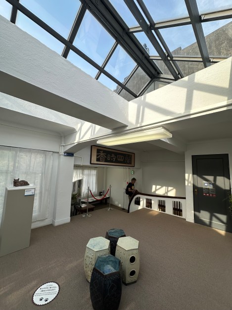 Shawn joined me in the Japanese wing. And of all strange coincidences, we ran into Noriko who was showing a tourist the museum. She laughed guiltily, saying she really had translation work to do. We sat admiring the beautifully crafted yet simple Japanese style rooms. Then she and her guest departed, and Shawn and I continued to tour the house. The house was truly a work of art that Asakura had designed and overseen the construction. There were rooms with ground gems glued onto the walls: garnet, sea shells, sapphire. The third-floor Orchid Room, formerly a greenhouse for Asakura’s collection of orchids, is now a gallery displaying works focusing on one of his favorite subjects, cats. The rooftop features the oldest extant roof garden in Tokyo, where the students learned gardening to sharpen their senses and become more familiar with nature. I spent much of the day there, then wandered back through the temples, visiting ones that Noriko had skipped. I walked back through the cemetery, enjoying the peaceful calm that it exuded.