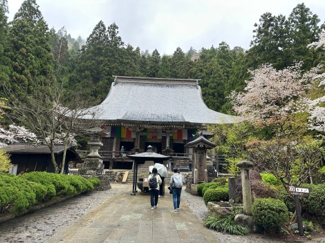 April 24. Despite the cramped quarters, I slept well. It was much quieter than our previous lodging. I was glad to be well-rested because we were heading to Yamadera, which means mountain temple. Officially known as Risshakuji, it was founded in 860 as a temple complex of the Tendai sect. I’d heard a lot about it but didn’t know what to expect. We boarded the slow train for a 30 minute ride into the mountains. Very nice scenery, people out in the fields working the land. I was amazed that each time I looked out the train window, I would see people working. It was clear that hard work was a shared value here. I think it was a big reason Japan was able to modernize so quickly during the Meiji era, cleverly adopting the best practices from each country they came into contact with. I was reminded of the rapidity with which orchards and horticultural practices blossomed in Santa Clara valley where I grew up. The Japanese were an important part of that story.