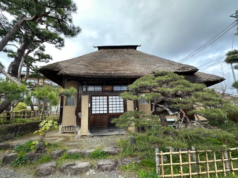 About 100 yards west of Kaminoyama Castle, I came upon a beautifully preserved neighborhood of homes built 200 years ago, including four samurai homes belonging to the Morimoto family, the Miwa family, the Yamada family, and the former Sogabe family, respectively. Two of the homes are still inhabited, so you can only observe from the outside, while two permit exploration for a fee. They each have a hook-shaped curved thatched roof and were built under the architectural style bukeya-chumon-zukuri. I felt like I had traveled back in time to the Edo period. I ran into Shawn in one of the houses, and chatted a bit before heading off to the other side of town to visit the former living quarters, tea houses, and enclosed gardens where Takuan taught Zen Buddhism and practiced tea ceremony.